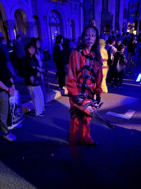 路上開始會出現工作人員扮的各種萬聖節喪屍