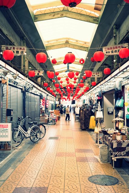 市場內高掛著許多燈籠 類似傳統市場的感覺 甚麼都賣