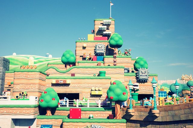 穿過水管看到的是跟電影場景一模一樣的蘑菇王國