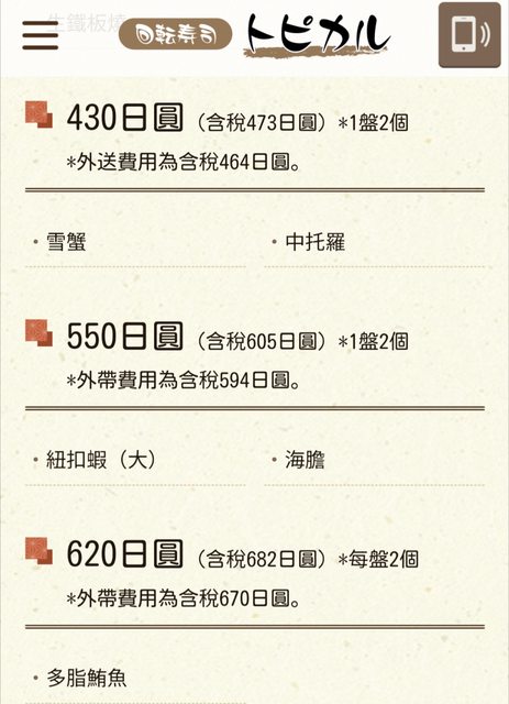 了當地有名的迴轉壽司店,名叫回転寿司トピカル(迴轉壽司Topical) 這家店位於富良野