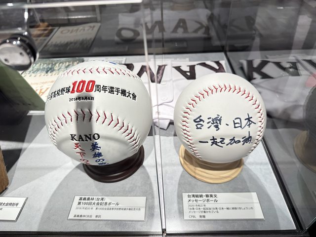 名人簽名球的區域也有收藏張泰山選手跟啦啦隊女孩的簽名球。