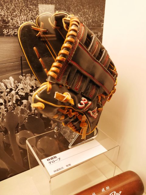 排隊時在我後面的一家人還帶了佐藤輝明的簽名手套進去拍照。