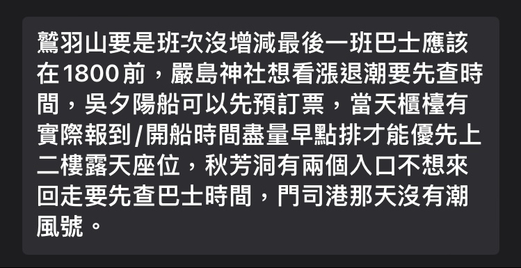 → frank60908 : 嚴島現在有登島稅要注意,漲退潮要先查(它有網站) 11/03 17:07