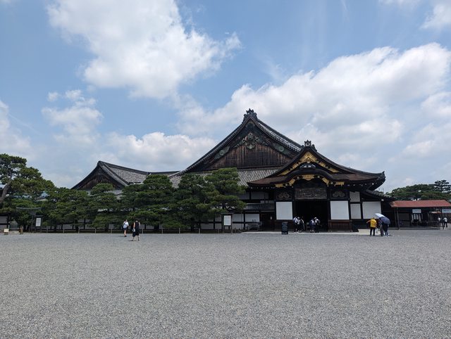 不論是城門還是宮殿都比天皇居住的京都御所還氣派 宮殿可以入內參觀,但內部禁止拍照 裡面相當的氣派,不論是屏風還是天花板都有華麗的繪畫以及金箔的裝飾 宮殿外也有廣大的庭院