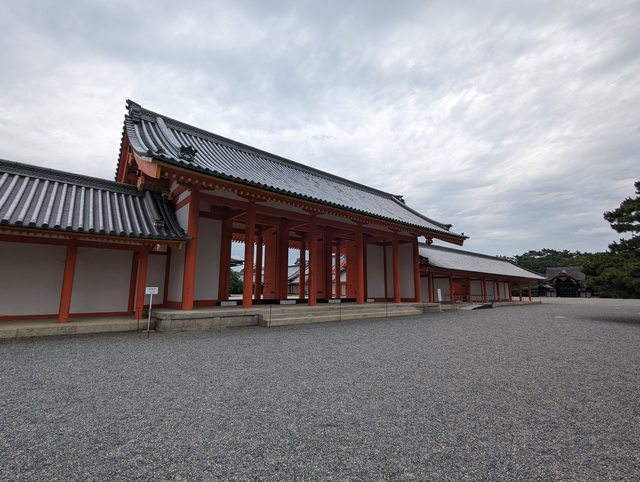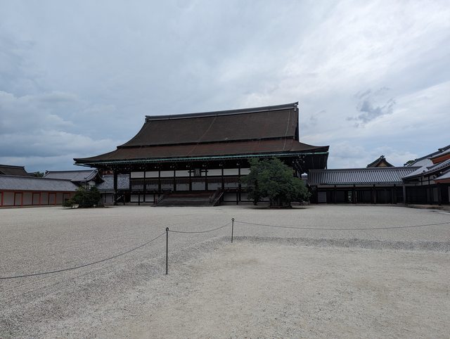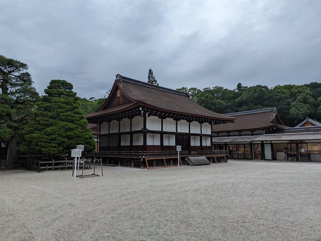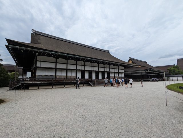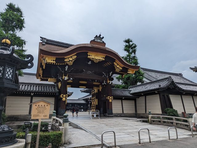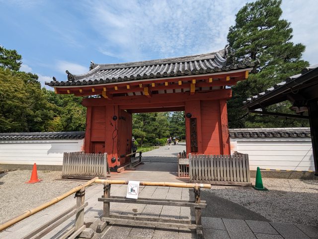 東本願寺的建築也是相當華麗壯觀 接著搭地鐵前往京都御苑 本來想從最南邊的門進去逛,但因為腳痛就算了 從側門進去,參觀宮殿也是走這裡