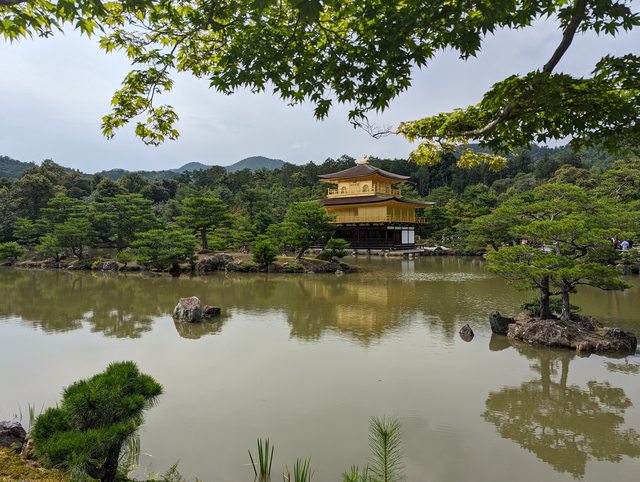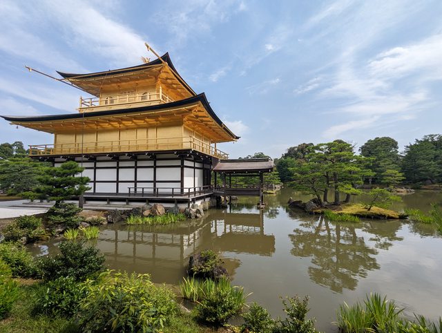 舍利殿外牆貼滿了金箔相當華麗,可惜水面不夠平靜清澈拍不到好看的倒影