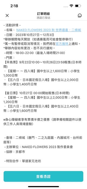 標題[讓售] 二條城夢幻互動光雕藝術展 早鳥票
