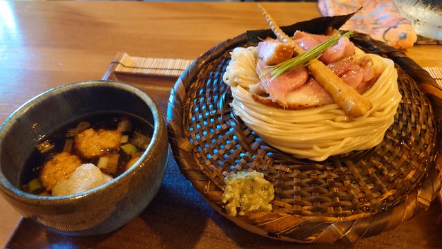 醬汁裡有附鴨肉丸子跟雞蛋,麵沾醬吃非常順口,鴨肉丸子的味道跟沾醬也很搭。