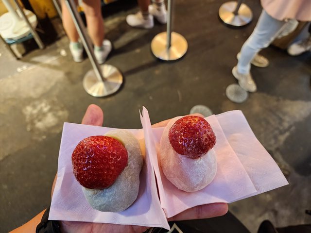 店家裡面有內用區,吃起來是很Q、草莓也很大顆,可以吃吃看,附有內用區。