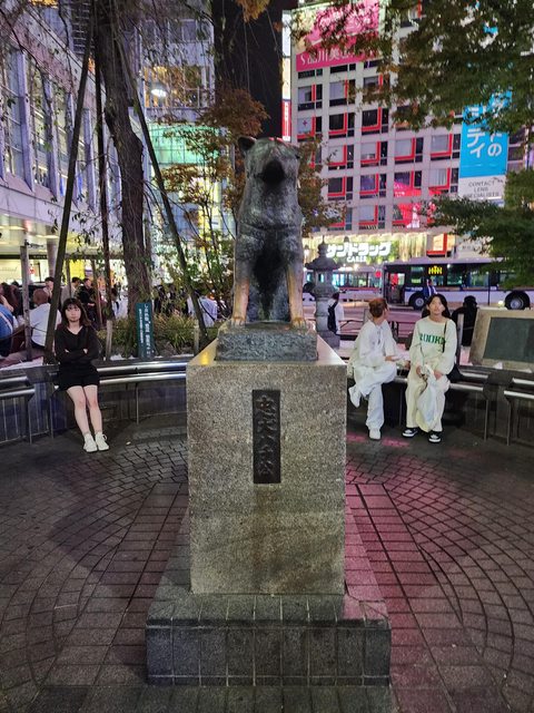 這隻是不久前萬聖節被封印的忠犬八公像,排隊照相的隊伍應該都是外國人。