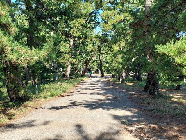 過大天橋後就是松樹林道路跟兩旁的沙灘