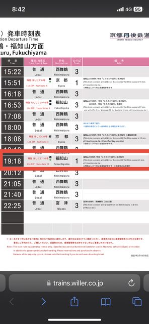 → Kaken : 是丹後鐵道,但要轉乘JR段(福知山後)也可以直接在 11/15 13:54