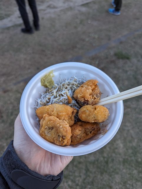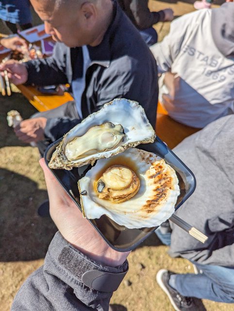 開始四處吃起在地料理(烤牡蠣烤扇貝/丼飯/酥炸鮟鱇魚)