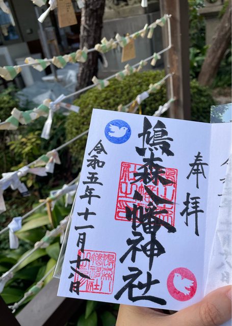 走到街道盡頭就是鳩森八幡神社,覺得他們家的印章好像死掉的推特喔!可愛XDD