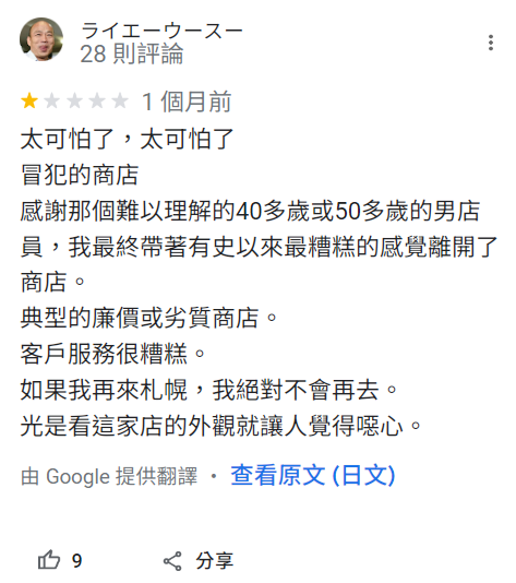 推 KaedeFuyou : 要看google評分的內容和評論人的國籍 11/24 10:35