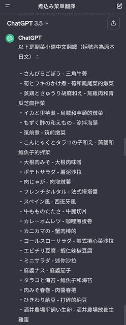 我後來拍菜單,丟給line擷取出文字,再丟給chatgpt 幫我翻譯