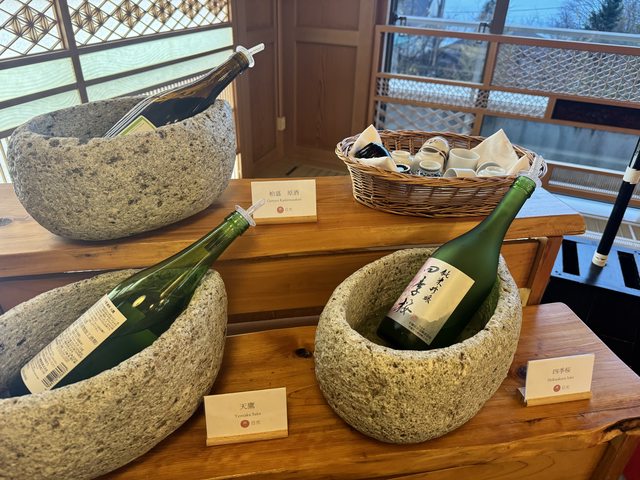 4.大廳提供的下午茶有免費清酒三種,喜歡喝酒的應該會開心。另外也有草莓牛奶