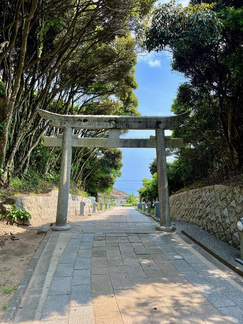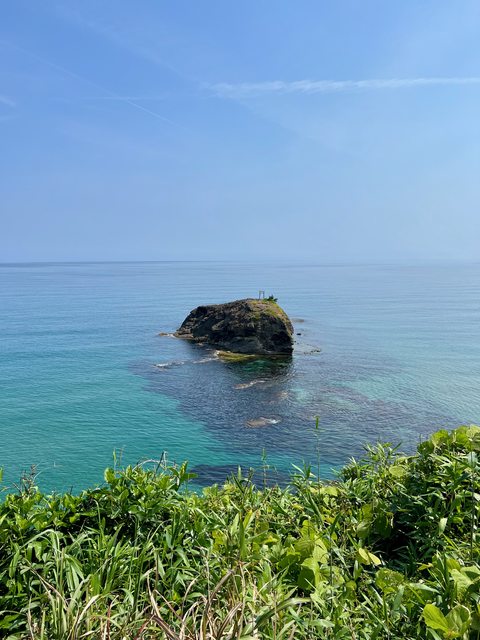 在海岸上能看見的礁石小島就是「淤岐之島」,相傳就是神話中白兔的住所,島上藏著一