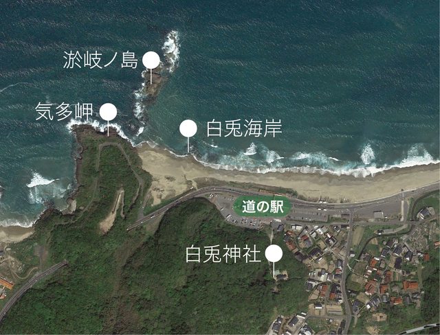 之驛 神話之里・白兔)」旁停靠。稍作歇息後,就直接先往海岸前進,感受神話舞台的