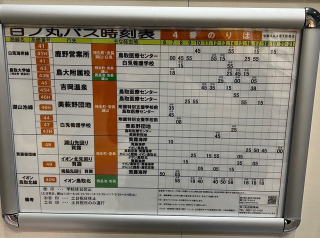 但預先查好時刻表的話,還算是能排出順暢的行程。可以在鳥取駅前的公車總站第4月台