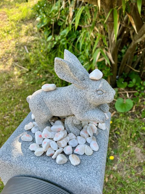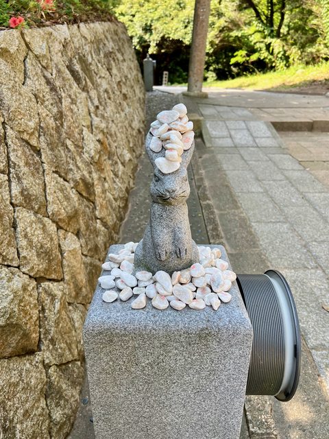 xd。許多人丟不上鳥居,遂將石頭疊在兔子身上,兔子看起來十分無奈。