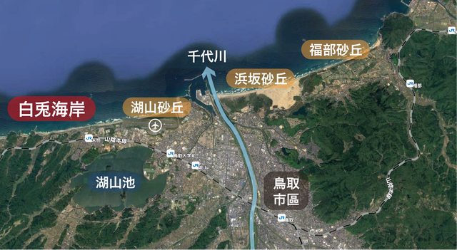 丘」的最西邊,擁有綿延的靜謐海灘,以及神話的加持,成為鳥取重要的觀光景點。