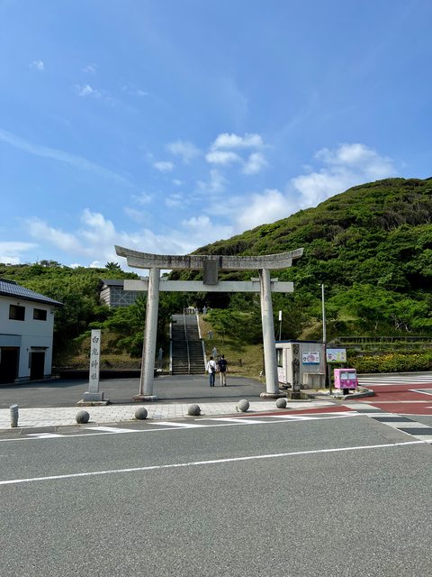 座鳥居,更顯神聖。沿著人行道,可以走上位於「氣多岬」的「白兎の丘」,大概就是神