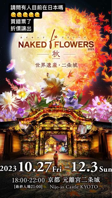 1.商品名稱 :NAKED FLOWERS 2023 秋 世界遺產 二條城 門票