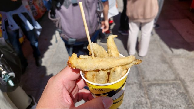 整尾拿起來的樣子,就小魚去炸,一小杯有6-7隻的量