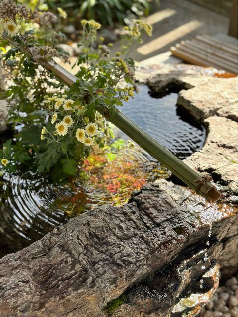 接下來往上走到阿智神社,手水舍的花很漂亮