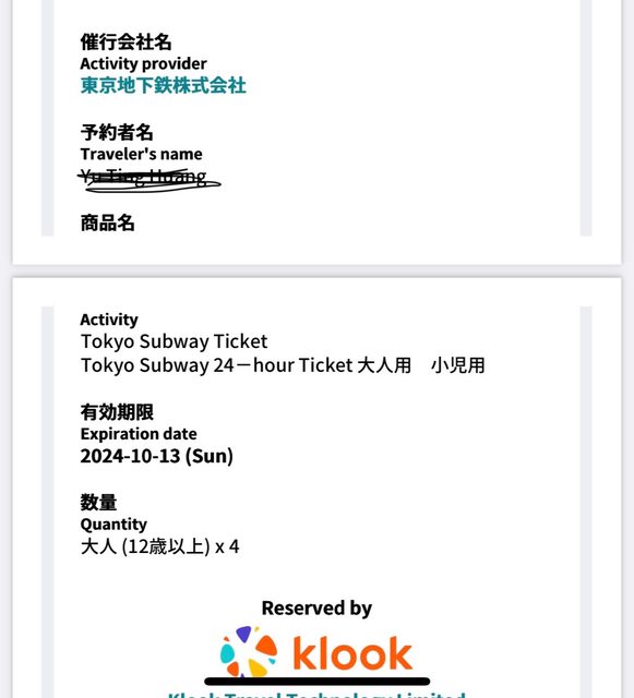 1. 物品名稱:東京地下鐵一日卷(24hr)