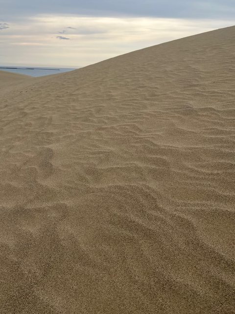 沙粒大小不一。鳥取砂丘位於沙源的千代川出海口旁,淘選度差,沙子粒徑大小不一,符