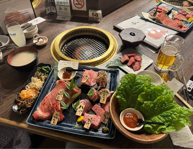 點了一份基礎的肉套餐、牛尾湯、蔬菜、甕釀牛小排、中厚牛舌以及厚切牛舌(必吃)+
