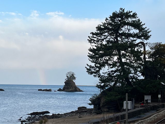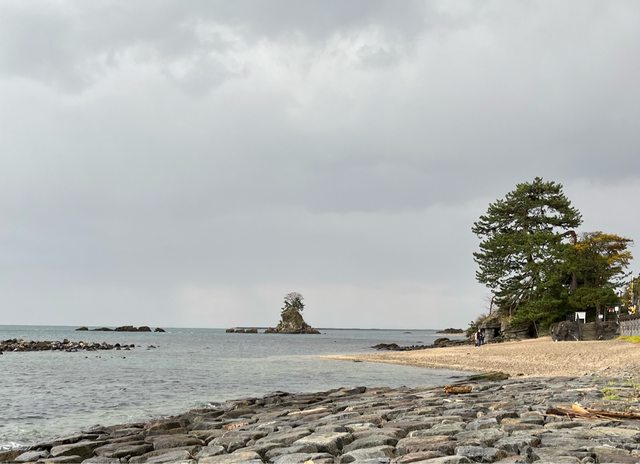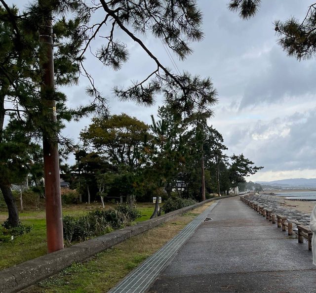 松樹著稱的雨晴海岸現在就是我們兩人獨享。