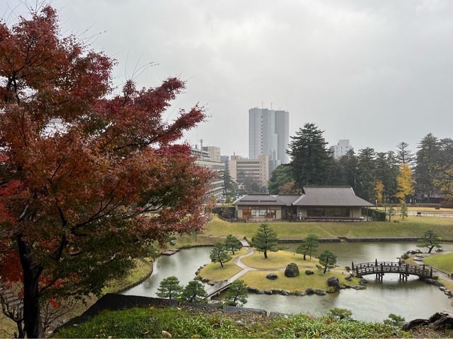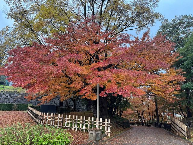隨意在金澤城公園內逛逛,清晨的雨水似乎把楓葉洗滌地更加火紅。