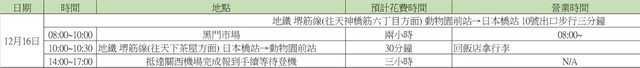 了一下時程,交通費支付方式應該會使用蘋果錢包綁電子icoca,以上的交通都是Google