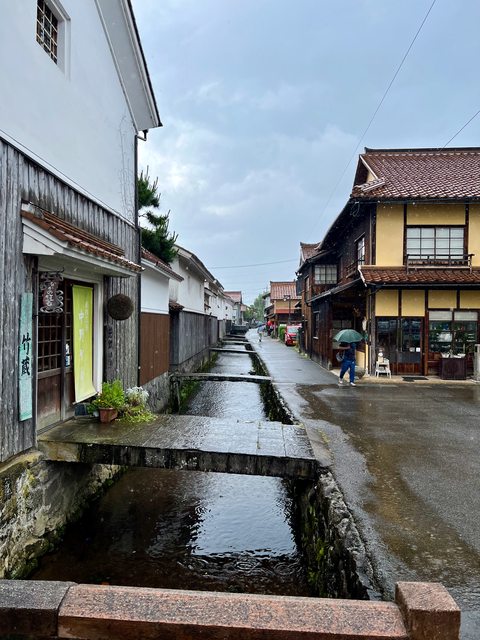 傾盆大雨。白碧土蔵群的街道上毫無人煙,實在非常寂寥,過往熙來攘往的商業都市景象