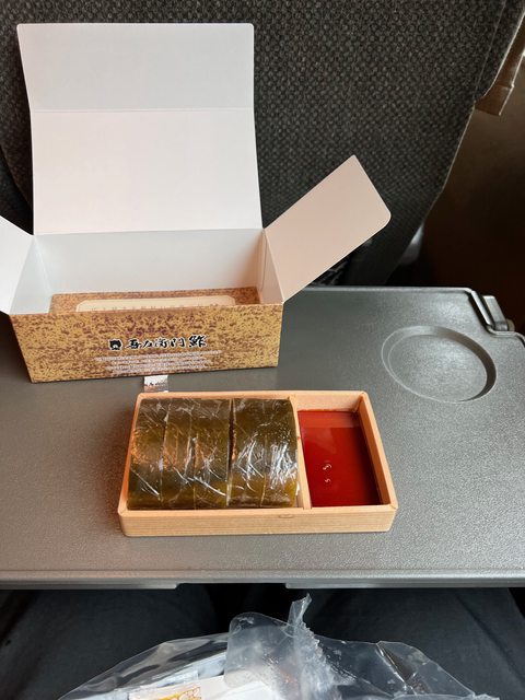 肚子又餓了起來,於是在倉吉駅一樓的賣店買了吾左衛門鮓的鯖魚壽司便當。發跡於米子