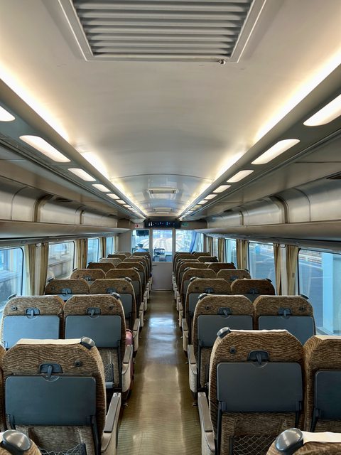 一踏入車廂,立刻被最前端視野超讚的的展望座席驚艷!因為大多數的乘客都在鳥取下車