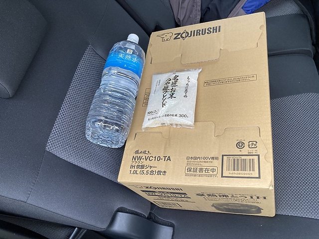 這是前一天好市多折合台幣3100買的電子鍋,7-11買的水,與一包兩合米
