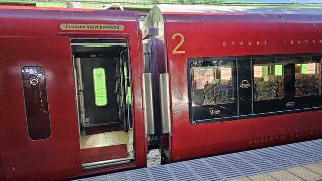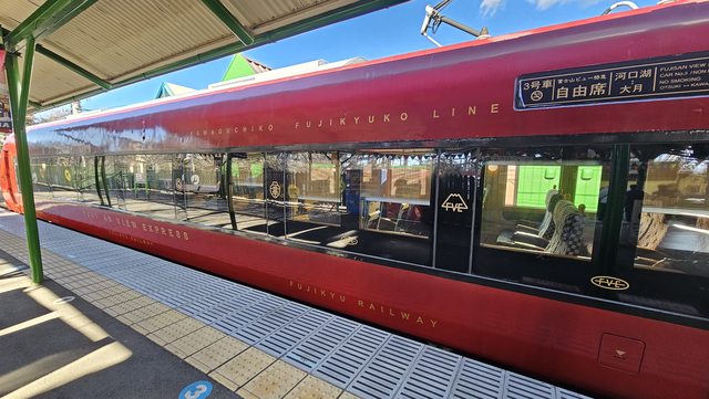 5. 富士急行特急列車塗裝典雅,充滿復古風,很值得一乘。東京鐵路周遊券可直接乘坐。