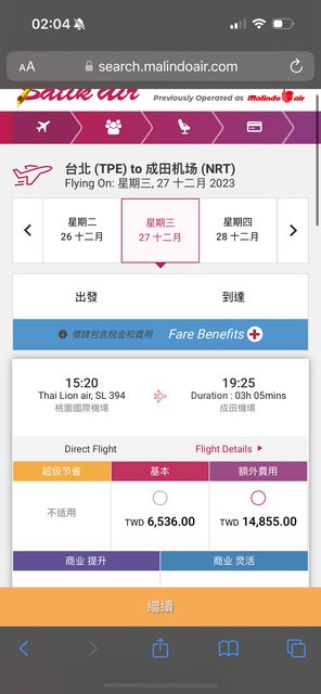 直到月初臨時起意想說看一下更改機票日期要多少錢,才發現我的訂單號碼不管是在馬印航空(馬來西亞)、還是馬印航空(印尼),輸入完我的訂單號碼、名字等資訊後,網站就顯示「Booking was cancelled already」,一看到後我就立馬翻了我的信箱、手機簡訊、甚至google行事曆,都沒有發現被取消航班的通知,後來我也到馬印官網查詢此段機票是否還有在銷售,也確認過還有在銷售,只是價格變成是當初的購買價格的三倍,請參考以下圖示。