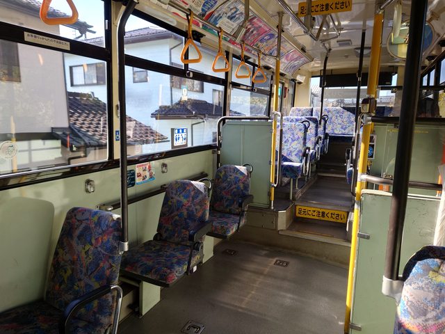 車子內裝跟一般市公車一樣,帶大行李有些彆扭。