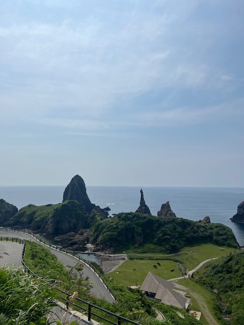 之面(鬼の面)」以及海蝕柱「金棒岩」。觀光船會靈巧的繞行金棒岩一圈,靠得非常近