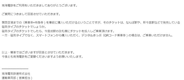 : 已經有先寫信問南海電鐵公司,但都還沒收到回覆。