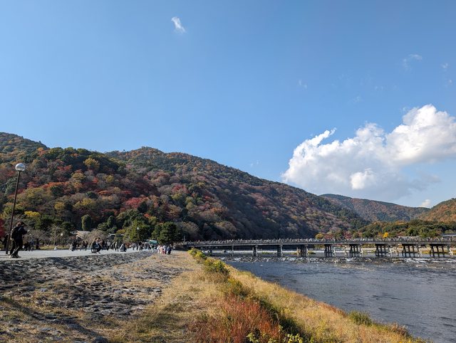 近中午,這時候嵐山開始湧現人潮,從中之島公園看向渡月橋上滿滿都是人...