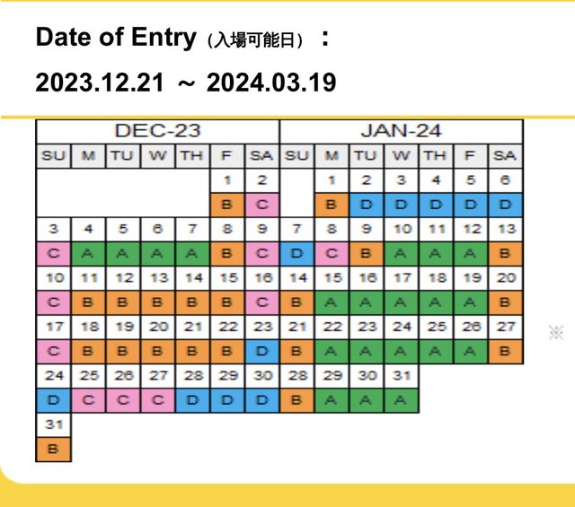 注意事項:請確認自己入園日期的票券別(請參考圖片)