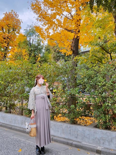 搭配粉棕色的袴裙也是頗秋