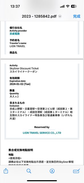 1. 讓售品項:京成電鐵skyliner票券2張