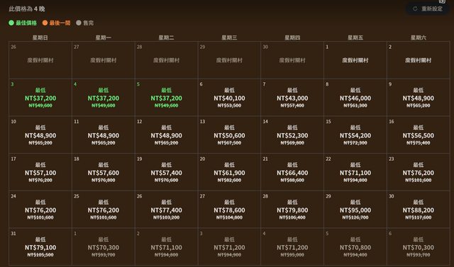 當時提前9個月看到的價格是這樣,開季第一周最便宜,然後逐漸上漲,聖誕節是顛峰。
